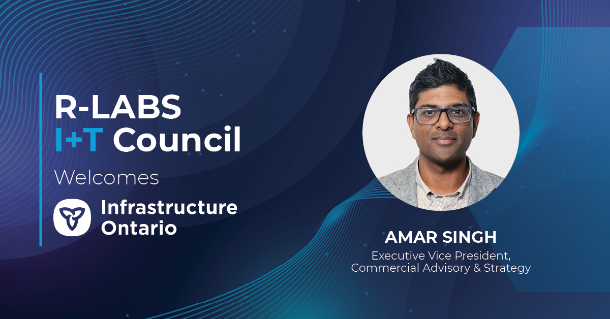 R-LABS, is pleased to announce the appointment of Amar Singh, Executive Vice President, Commercial Advisory at Infrastructure Ontario, to its Industry Issue + Transformation (I+T) Council. Amar joins a growing coalition of leaders committed to solving systemic challenges in real estate and housing through innovation and venture creation.